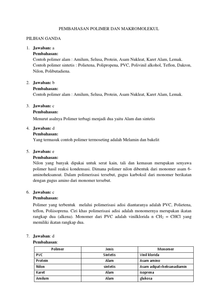 Soal Dan Jawaban Polimer Ilmusosial Id