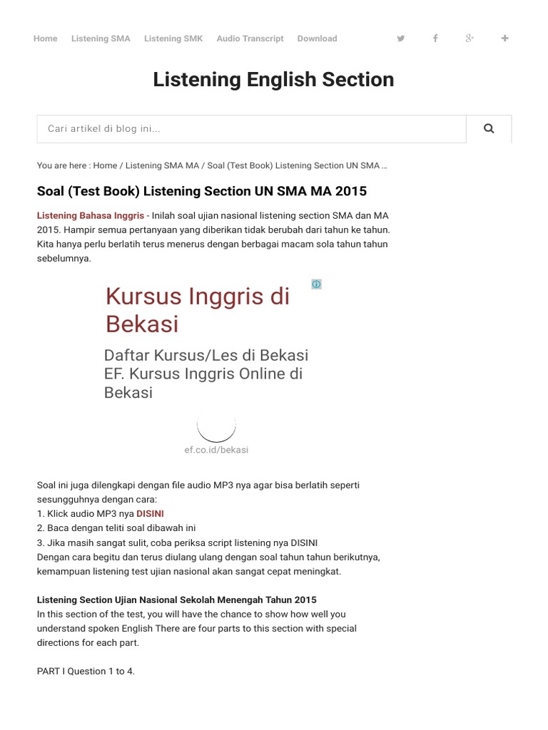 Soal Test Book Listening Section Un Sma Ma 2015 Listening English Section Beverages Internet