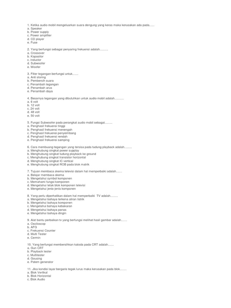 Soal soal tentang elektronika Berilah tanda X pada ABCD atau E pada jawaban yang benar. 1192 Alokasi Waktu. Soal dan jawaban perawatan pc soal dan jawaban melakukan perawatan pc.